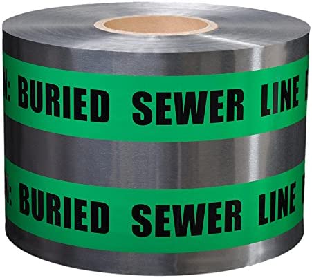 Warning Tape - Aluminum Green "Buried Sewage Line" , 6", 300 Meter